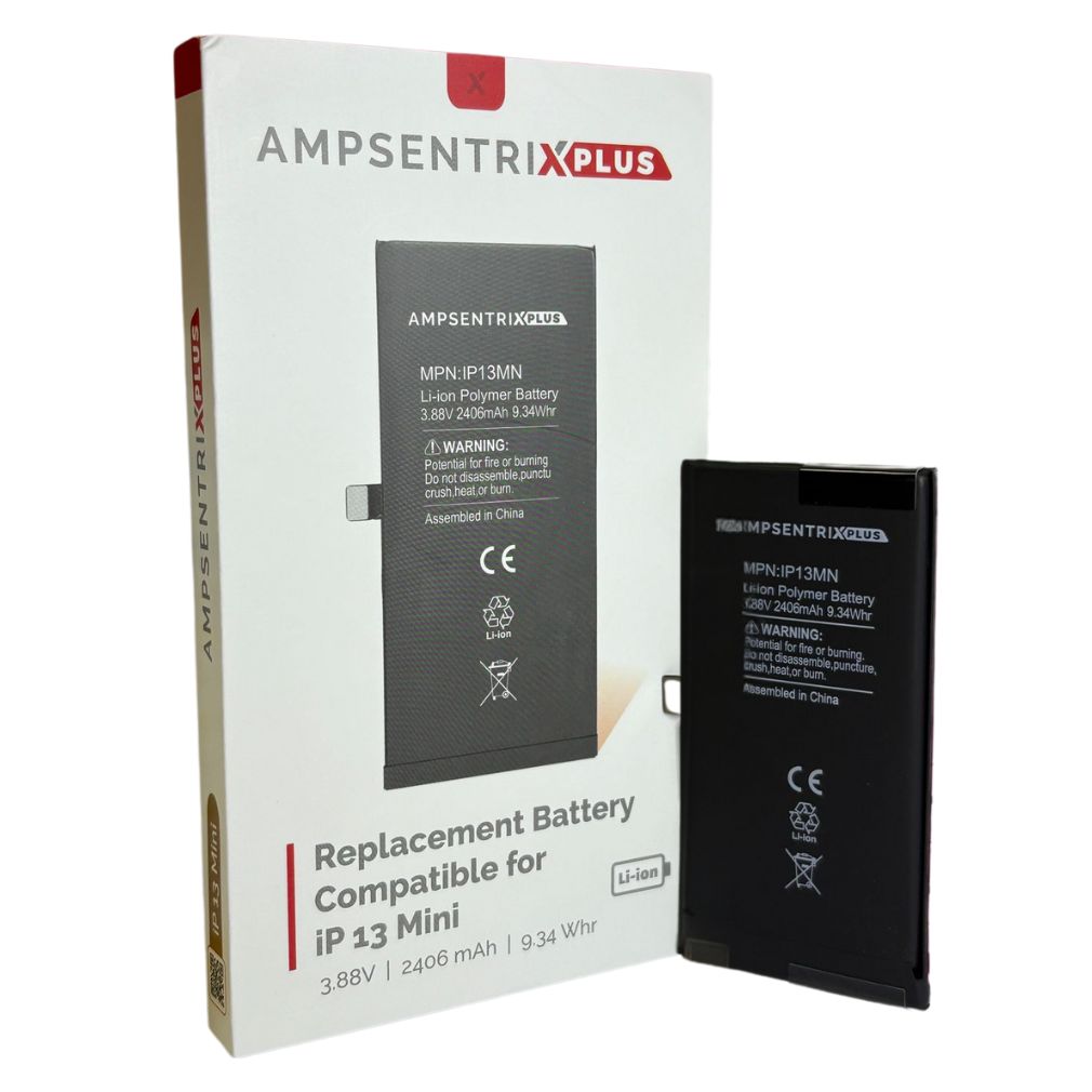 La Batería iPhone 13 Mini Ampsentrix Plus ofrece capacidad original, más ciclos de carga y chip EPROM listo. Sin soldador ni mensaje de pieza desconocida.